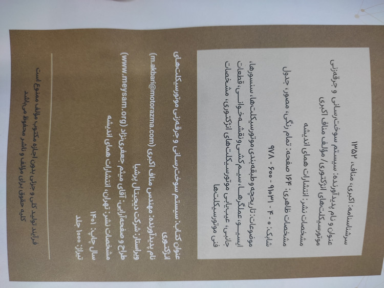 این کتاب خیلی کمیاب و جامع هست که همه چیز درمورد موتورسیکلت های انژکتوری را یاد میدهد و مخصوص افرادی هست که میخواهند تازه تعمیرکاری را یاد بگیرند و یا پیشرفت کنند
