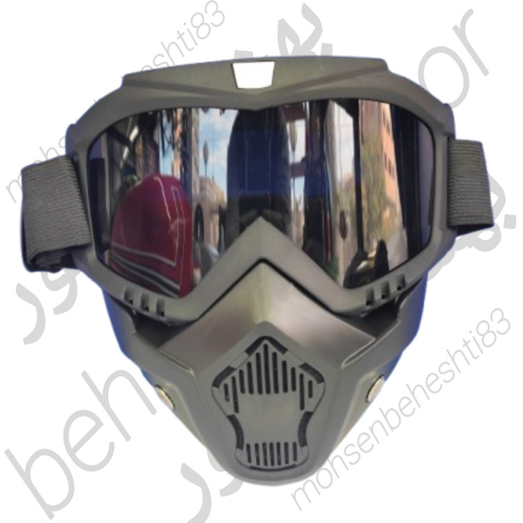 این ماسک که شبیه ماسک پینتبال هست،میتواند به عینک موتورسواری هم تبدیل شود چون دوتیکه هست و میتوان قسمت چانه آن را جدا کرد.